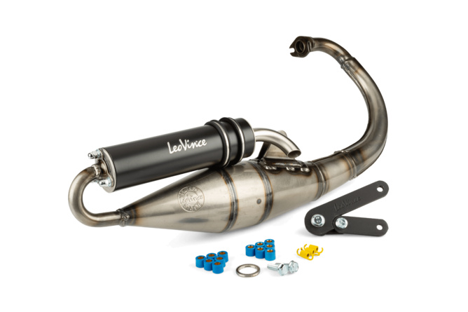 Wie die meisten LeoVince Anlagen eignet sich dieser Auspuff am besten für original oder 50cc Sportzylinder, mit guter Leistung im unteren bis mittleren Drehzahlbereich.