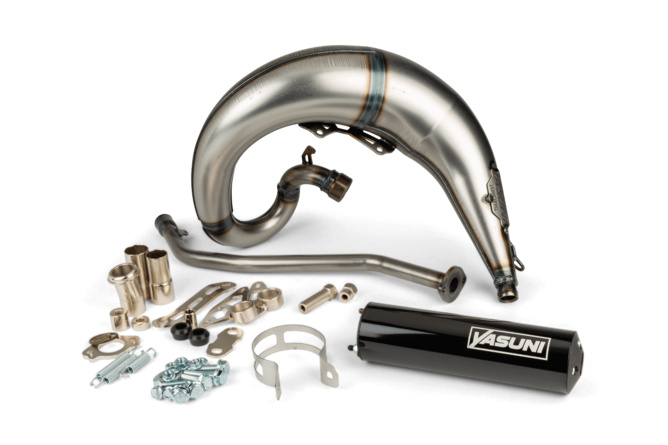 Kerniger Sound und top Leistung in bewährter Qualität des spanischen Auspuffanlagen-Herstellers Yasuni. Vor allem im mittleren Drehzahlbereich spielt der Auspuff sein volles Potential aus und eignet sich damit hauptsächlich für 50 ccm - 70 ccm Sportzylinder.