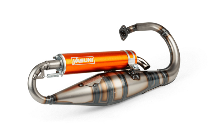 Der Yasuni R-Pro Auspuff bietet kompromisslose Leistung, hat dabei aber Staßenzulassung. Er eignet sich optimal zum Einsatz auf 70ccm Sport Zylindern, kann aber auch mit 50ccm Zylindern gefahren werden. Während der Yasuni Z rein auf 50ccm Zylinder ausgelegt ist, ist der Yasuni R und der R-Pro für 70ccm Sportzylinder vorgesehen.