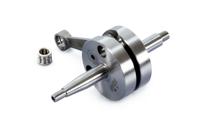 Verstärkte Renn-Kurbelwelle von Polini. Durch das verstärkte CNC-gefräste Pleuel ist sie besonders für getunte Motoren gut geeignet. Obwohl wir einen Einsatz im MidRace / Sport Bereich empfehlen, kann die Kurbelwelle auch für stärker getunte Racing Setups bis 70ccm benutzt werden. Sie ist für alle Sport- und Rennzylinder mit einer Leistung von bis zu 14 PS geeignet.