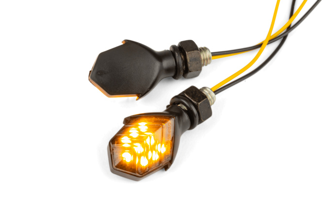 Universal LED Blinkerset im sportlichen Design für einen cleanen Look an deinem Roller oder Bike. Die stylischen Blinker passen auf Roller und andere Fahrzeuge, ideal für Custom-Projekte mit dem gewissen Etwas.
