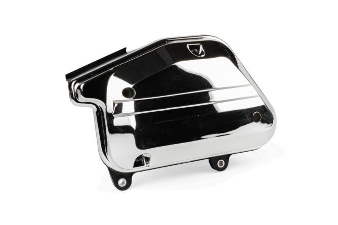 Luftfilterkasten mit Abdeckung in Chrom-Look. Der Luftfilterkasten hat den gleichen Durchsatz wie der Originalluftfilter, kann also ohne Anpassungen am originalen Vergaser verbaut werden. Wird inklusive Luftftiltermatte geliefert.