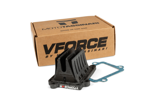 Die VForce 3 von Moto Tassinari verfügt über eine besondere Architektur, die in der Mitte wie ein V geformt ist. Dank dieses speziellen Designs können doppelt so viele Membranplättchen (4 statt 2) eingesetzt werden, was zu einer verbesserten Zylinderfüllung führt. Dies wiederum verbessert die Gasannahme und die Leistung bei niedrigen Drehzahlen.
