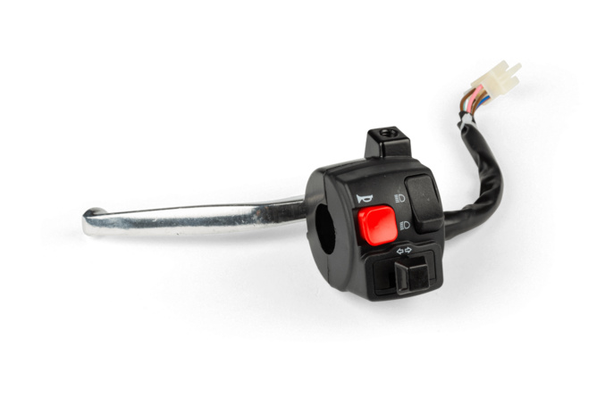 Lenkerarmatur mit Schalter und Bremshebel für die linke Lenkerseite für Yamaha BW's / Slider und MBK Booster / Stunt Roller. Die Einheit ersetzt die original Armatur ohne Anpassungen.