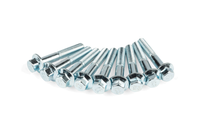 Die Schrauben ersetzen die verschlissenen Variodeckel-Schrauben von 4-Takt Chinarollern mit GY6 / 139QMB Motor. Hergestellt aus hochwertigem Stahl, bieten diese Schrauben eine dauerhafte und korrosionsbeständige Lösung, die einen sicheren und zuverlässigen Sitz gewährleistet. Der Satz enthält insgesamt 9 Schrauben.