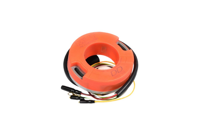 Die DD Innenrotorzündung hat eine digitale CDI mit variabler Zündzeitpunktverstellung, d.h. der Zündzeitpunkt passt sich an die Motordrehzahl an, und ist damit bestens für getunte Motoren geeignet. Auf diese Weise erhält man unabhängig von der Drehzahl immer das beste Verhältnis zwischen Drehmoment und maximaler Leistung.