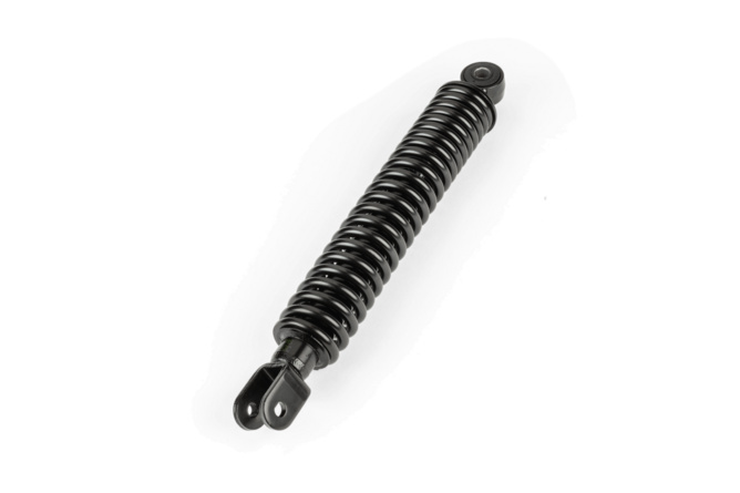 Günstiger Ersatzstoßdämpfer von Forsa für Peugeot Kisbee / Strettzone 2-Takt / 4-Takt. Klassisches Federbein mit schwarzer Feder, ersetzt den original Dämpfer ohne weitere Anpassungen.