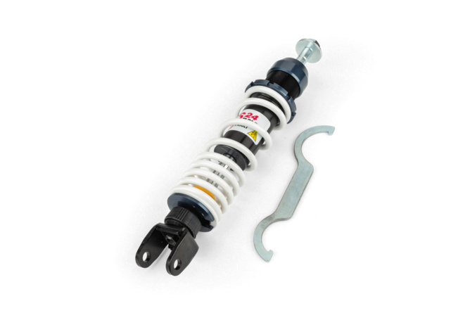 Der Malossi RS24 Stoßdämpfer ist nicht nur ein technisches sondern auch ein optisches Highlight. Der High-End Stoßdämpfer kann natürlich präzise eingestellt werden, um den Roller insgesamt auf Straßenbedingungen, Einsatzart und Fahrstil anzupassen. Die Federspannung ist stufenlos verstellbar, die Dämpfung (Zugstufe) ist 24-fach verstellbar.