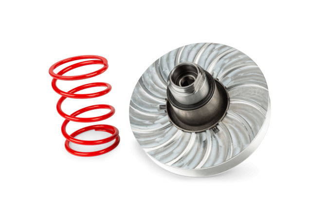 Die Leistung des Wandlers hängt stark von der Gegendruckfeder ab. Neben Steigung und Oberflächenbeschaffenheit, die sich auf die Geschwindigkeit der Riemenbewegung auswirken kann, muss die Härte der GDF an die Motorleistung angepasst werden. Im Allgemeinen gilt: Je stärker der Motor, desto härter die Feder.