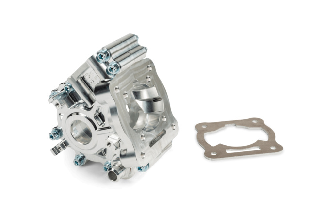 These cases were designed for plug‑and‑play installation with numerous Derbi parts and accept Derbi Euro 2 as well as Euro 3/4 crankshafts, Derbi‑type ignitions and Derbi Euro 3/4 cylinder kits. Thanks to the included adapter plate, they can also take cylinders with FL stud spacing. On the intake side, they are designed for a Derbi‑type reed valve with 60x40 mm bolt spacing and already feature the required machining for installing a VForce3i reed valve.